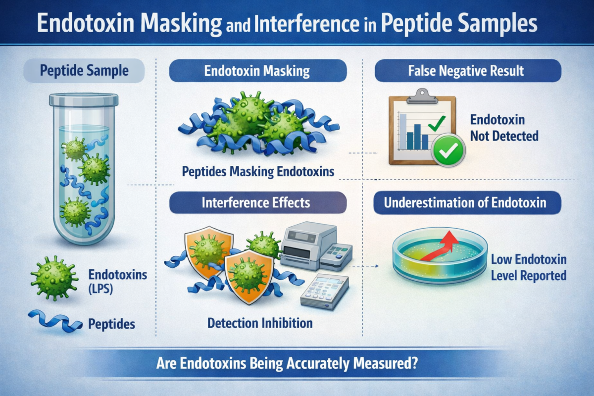 Learn how endotoxin masking can interfere with detection in samples, why it happens, and best practices used to reduce interference risks in lab testing. In practice, endotoxin masking can make a peptide-containing matrix appear “clean” while biologically active endotoxin is still present—an outcome that matters for both product safety and experimental interpretation [1], [2], [6].