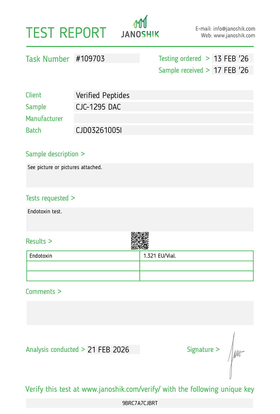 This batch of CJC-1295 DAC has been third party lab tested and verified for quality.