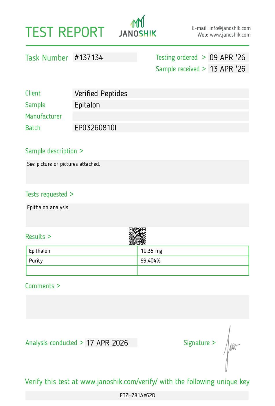 The peptide's origins in pineal extract research, combined with observations of multi-system effects across diverse experimental models, have positioned Epitalon as a subject of growing scientific interest in experimental aging biology. Researchers seek to understand how a single tetrapeptide could influence such disparate endpoints as immune cell populations, retinal electrophysiology, oxidative damage markers, and genomic stability indices.