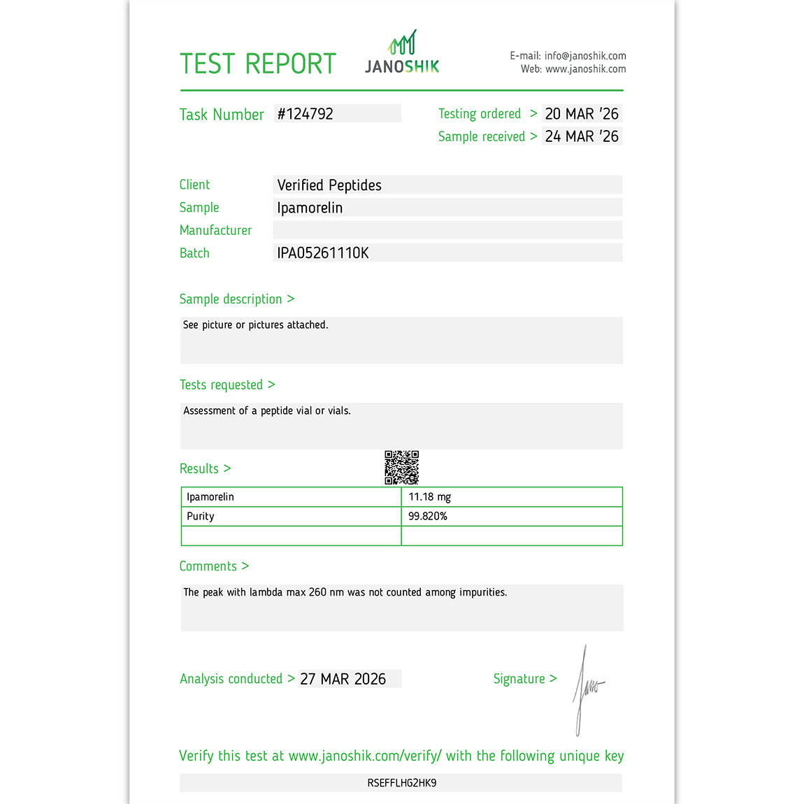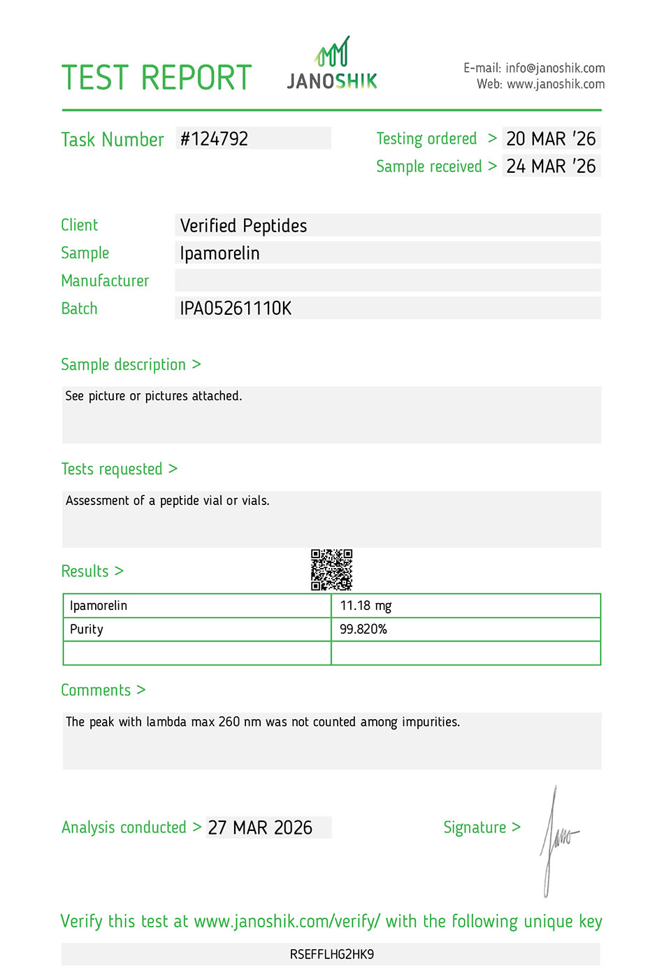 This batch of Ipamorelin has been third party lab tested and verified for quality.