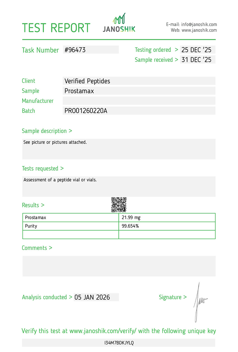 This batch of Prostamax has been third party lab tested and verified for quality.
